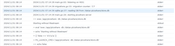 Le log que tu fournis semble indiquer que Picoshare a créé sa base de données à la racine du dossier partagé datas-picoshare. À vérifier donc.