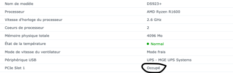 Sauf que cette carte, sur mon NAS ne fonctionne pas : Elle n'apparait pas, je vois bien le port PCI comme occupé dans le centre d'info (cf capture) mais il n'y a aucun référence, aucun LAN3. Bref ou c'est software ou Hardware. Le NAS est en 7.2 Update 3, donc à jour... J'ai testé de réinstaller DSM sur un disque dur autre que ceux de mon stockage, soit, une clean install mais rien à faire même problème... Une idée ?