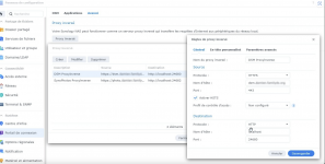 Pour la perte d'accès, c'est probablement un soucis avec le reverse proxy... Montre voir là aussi avec une capture