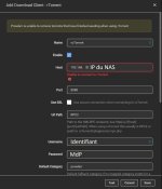 On va commencer sur prowlarr je n’arrive pas à connecter le client ruTorrent. Je laisse les valeurs par défaut sauf sur Host = adresse iP du nas ; le port de rutorrent ; et avec les bonnes valeurs sur username et password.